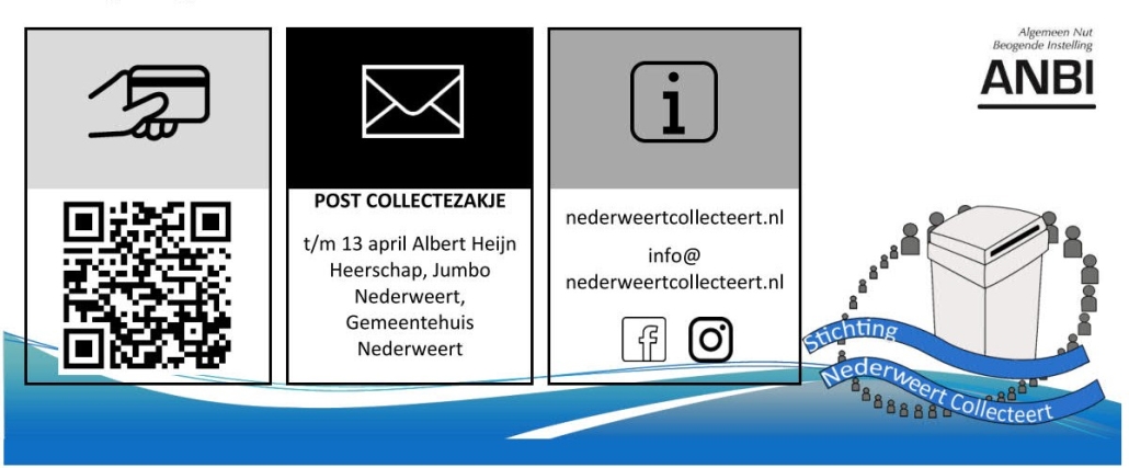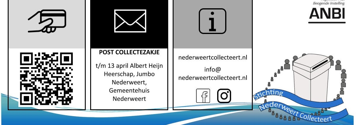 - Digitaal: Doneren kan ook eenvoudig en veilig via de website www.nederweertcollecteert.nl.